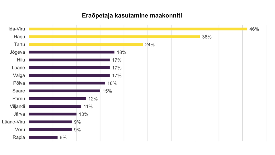 Arenguseire Keskuse tellimusel Eestis esmakordselt läbi viidud eraõpetajate kasutamise küsitlusest selgus, et koguni 28% lapsevanematest on kasutanud laste kooliõpingute toetamiseks eraõpetajat. Kõige sagedamini palgatakse eraõpetaja Ida-Viru, Harju ja Tartu maakonnas.