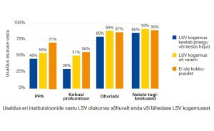 Arenguseire Keskuse tellimusel tehtud küsitlusest selgus, et lähisuhtevägivalla puhul usaldavad inimesed politseid ja teisi riigiasutusi märksa vähem kui tavaolukorras. Samal ajal püsib usaldus naiste tugikeskuste ja Ohvriabi vastu väga kõrgena ka nende seas, kelle kokkupuude vägivallaga on vahetu või hiljutine.
