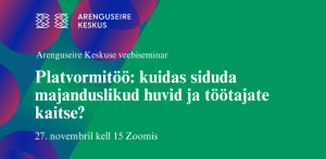 Arenguseire Keskuse veebiseminar „Platvormitöö: kuidas siduda majanduslikud huvid ja töötajate kaitse?“ toimub neljapäeval, 27. novembril kell 15.00−16.30 Zoomis.